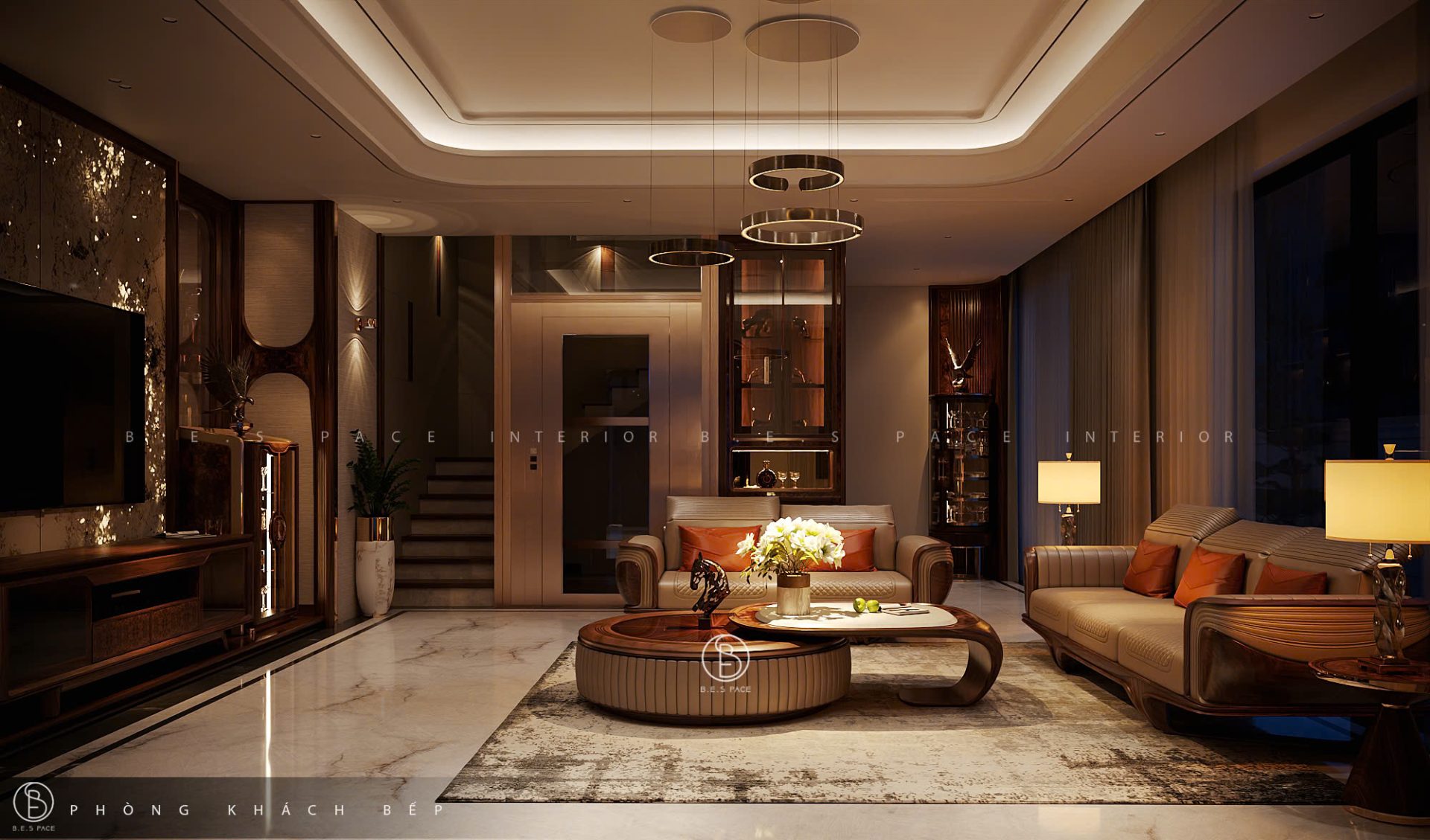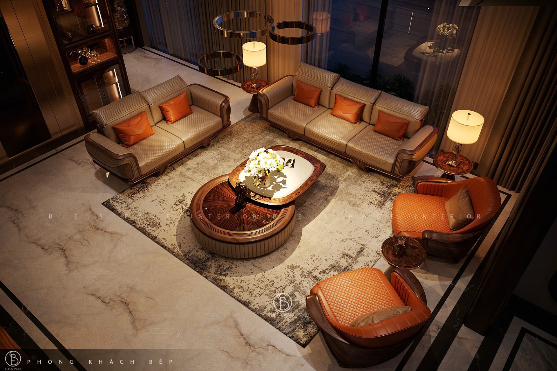 Tổng thể phòng khách toát lên sự sang trọng, hiện đại và bề thế – xứng tầm không gian sống cao cấp.