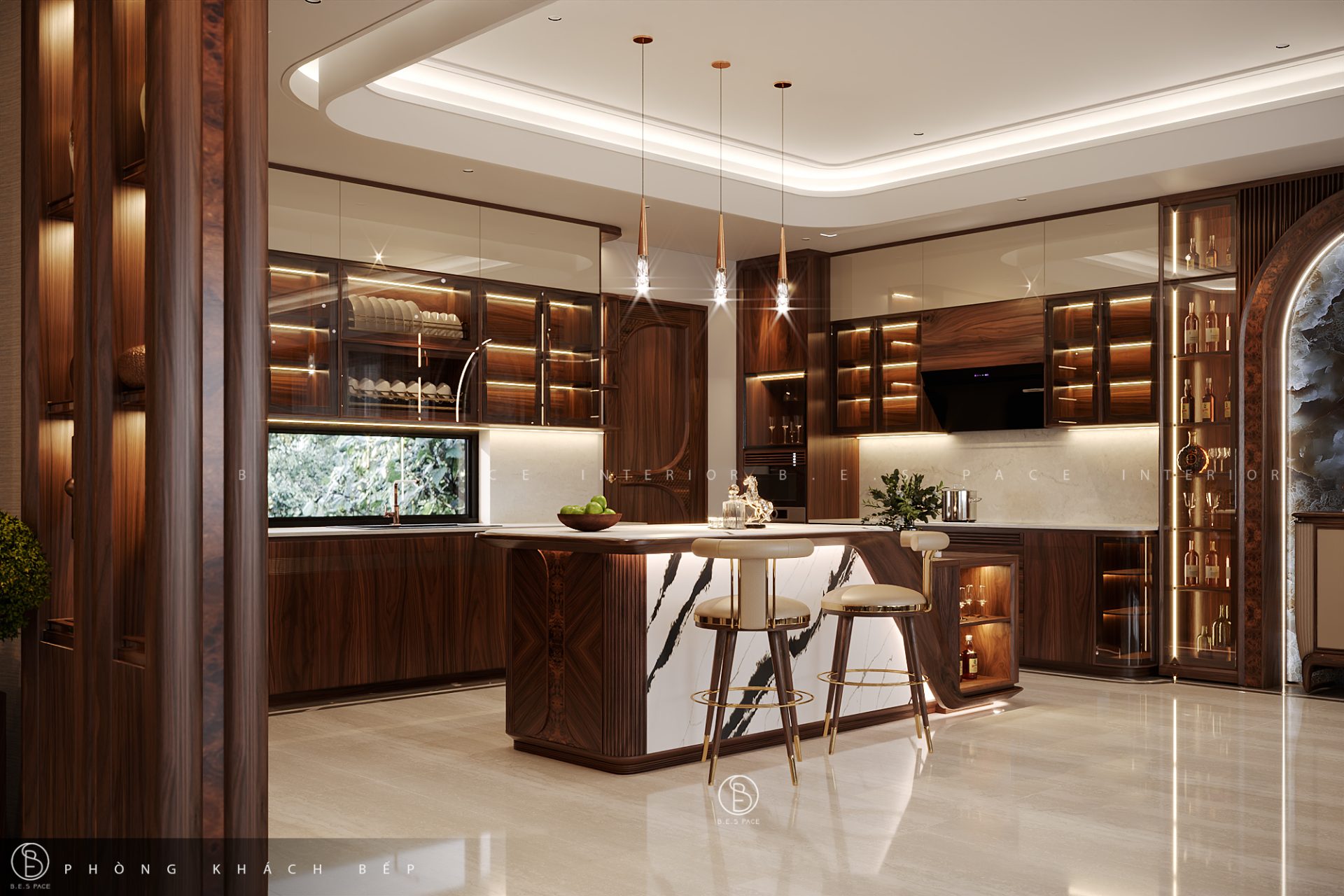 Khám phá dự án Nghệ An Villa với nội thất gỗ óc chó cao cấp từ BESPACE. Sự kết hợp hoàn hảo giữa kiến trúc hiện đại và nghệ thuật uốn cong gỗ thủ công tinh tế.